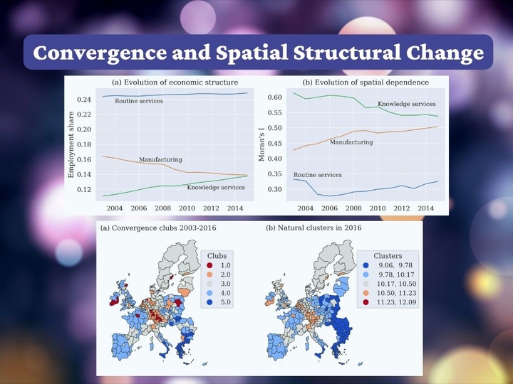 This article studies regional income convergence and its conditioning factors in 267 subnational regions of the European Union during the 2003–2016 period. Building on previous research that documents the formation of multiple convergence clubs in per-capita income, we study the role of structural change and spatial dependence as key conditioning factors of the club convergence process. Our results are threefold. First, we document that the spatial distribution of the convergence clubs shows a strong degree of spatial dependence. Second, when we study the evolution of structural change and spatial dependence, our results show that the share of manufacturing has been decreasing, while its degree of spatial dependence has been increasing over time. In contrast, the share of knowledge-intensive services has increased, while its degree of spatial dependence has decreased. Third, we evaluate the role of structural change and spatial dependence in the formation of convergence clubs using a spatial ordered-logit model. Our results show that when spatial dependence is omitted from the econometric specification, both manufacturing and knowledge-intensive services are not significant predictors of club convergence. Only when spatial dependence is added to the specification do most of the structural change variables become statistically significant. In addition, there are contrasting spatial effects between variables of structural change. On the one hand, the geographical spillover effects for manufacturing and routine services are statistically significant. On the other hand, knowledge-intensive services do not show significant spatial spillover effects. Overall, our results highlight the joint importance of structural change and spatial dependence in the formation of convergence clubs. Specifically, the notion of spatial structural change deserves further attention, as it appears to play a major role in the evolution of regional disparities in the European Union.
